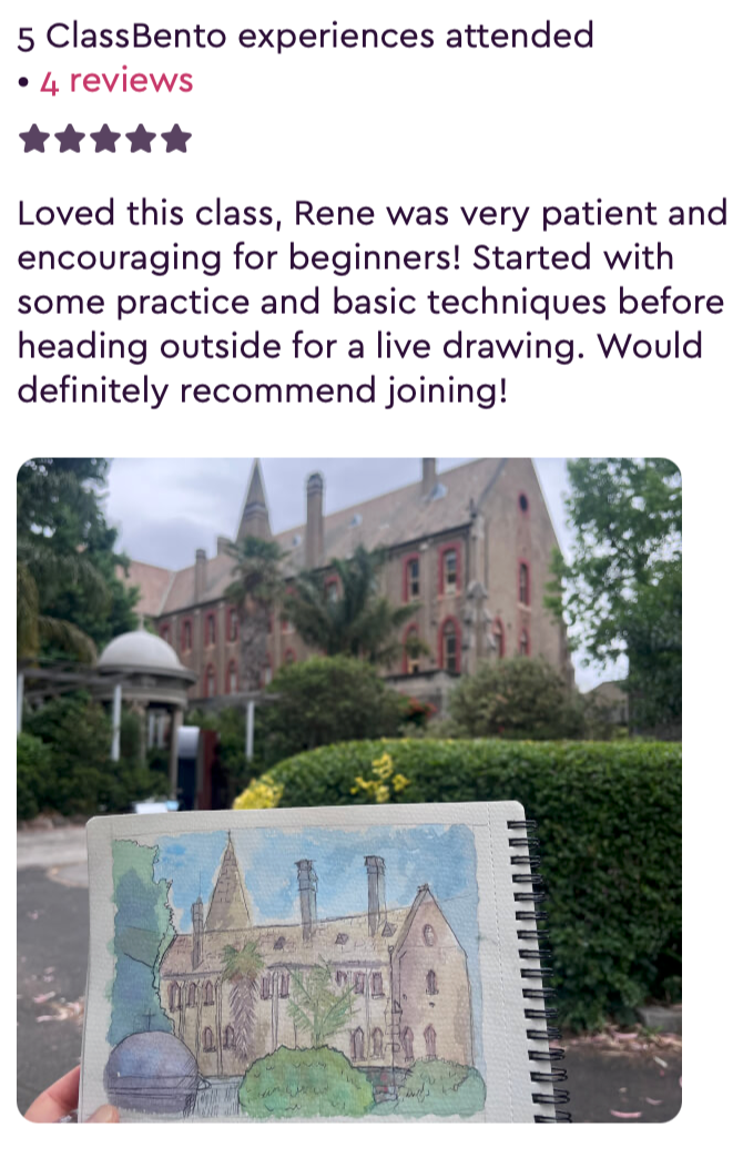 All of these, set against the historic buildings and serene gardens of Abbotsford Convent.By the end of the session, you'll have a collection of personalised artworks and materials to take home.